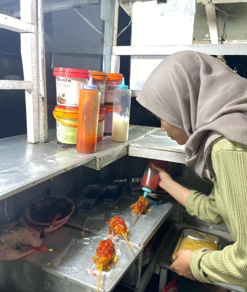 Outlet ini beroperasi setiap sore hingga malam, mulai pukul 16.45 hingga sekitar pukul 22.00 WIB. Selama magang, mahasiswi tersebut aktif terlibat langsung dalam proses manajemen dapur. Mulai dari menyiapkan bahan seperti sosis dan keju, membuat adonan tepung yang menghasilkan tekstur renyah, hingga menggoreng corndog hingga berwarna kuning keemasan (golden brown) — seluruh proses tersebut menjadi bagian dari pengalaman hariannya.