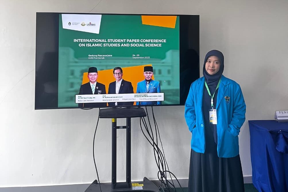 Pontianak, 07 Oktober 2025 – Siti Khadijah, Mahasiswi Program Studi Perbankan Syariah Fakultas Ekonomi dan Bisnis Islam Angkatan 2022, berhasil mencatatkan prestasi membanggakan di ajang internasional. Siti meraih Terbaik 3 Fakultas Ekonomi dan Bisnis Islam dalam International Student Paper Conference (ISPC) on Islamic Studies and Social Science 2025. Kegiatan ini dilaksanakan pada tanggal 24–25 September 2025 secara hibrida dan diikuti oleh peserta dari tiga negara, yaitu Indonesia, Malaysia, dan Brunei Darussalam.