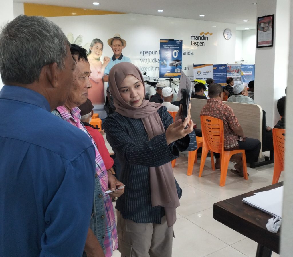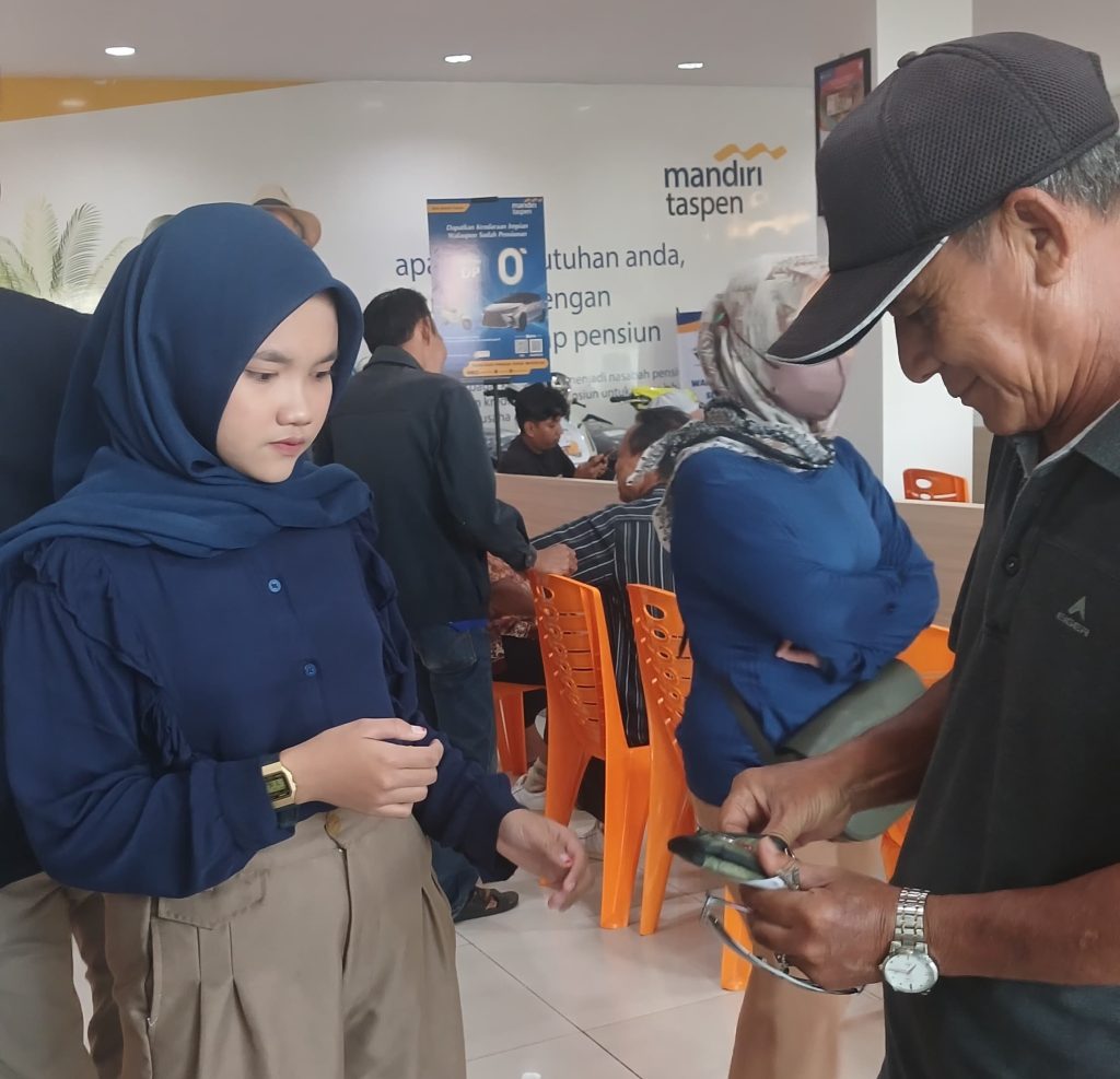Pada kesempatan kali ini, mahasiswa kembali terlibat aktif dalam kegiatan pelayanan pengambilan gaji pensiunan, khususnya untuk nasabah Taspen (Pegawai Negeri Sipil) dan Asabri (anggota TNI/Polri), yang dilaksanakan rutin setiap awal bulan. Tanggal 2 Juli 2025 menjadi momentum penting di mana para mahasiswa berkontribusi langsung dalam proses autentikasi nasabah dan verifikasi dokumen sebagai bagian dari sistem layanan keuangan pensiunan yang diterapkan oleh Bank Mandiri Taspen.
